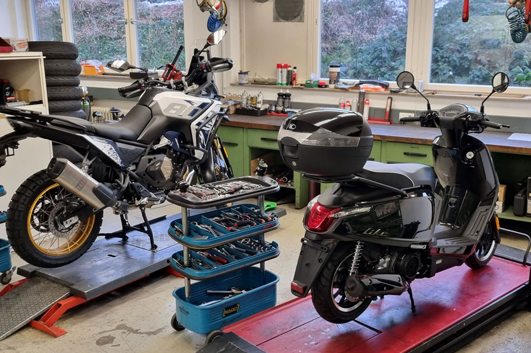 Unsere Meisterwerkstatt kümmert sich um sämtliche Reparatur- und Instandsetzungsarbeiten für alle unsere Vertragsmarken, zuzüglich der etablierten japanischen Marken Suzuki, Yamaha, Kawasaki und Honda.